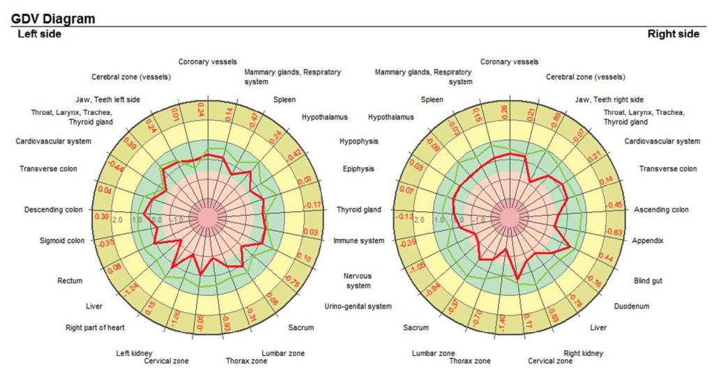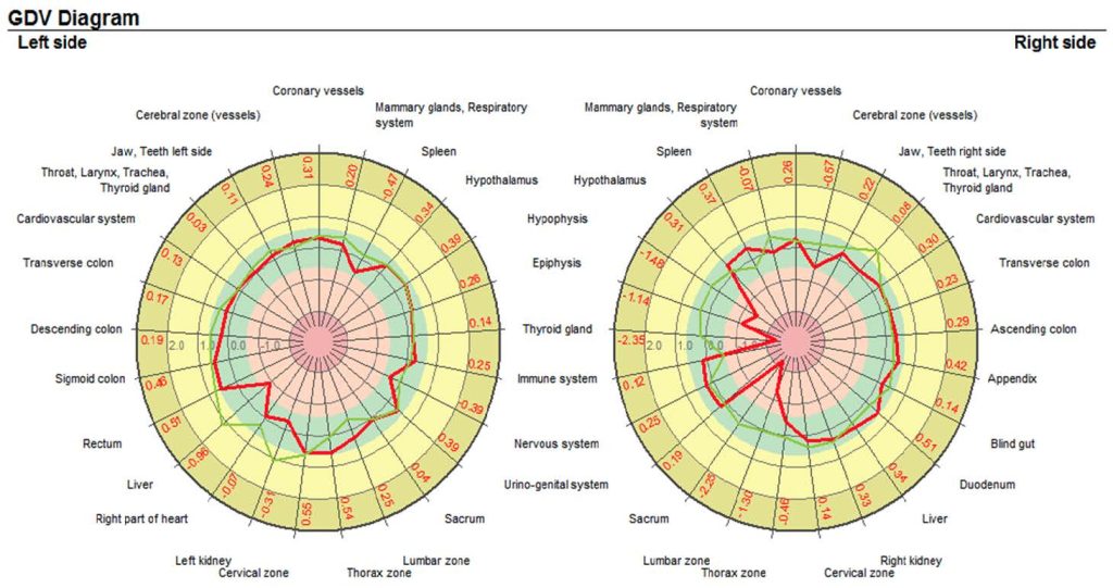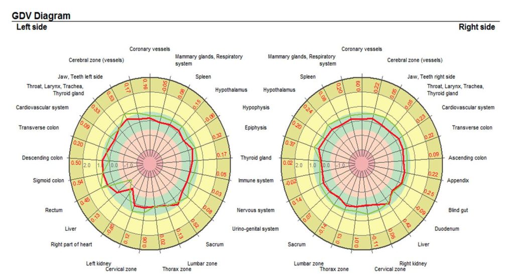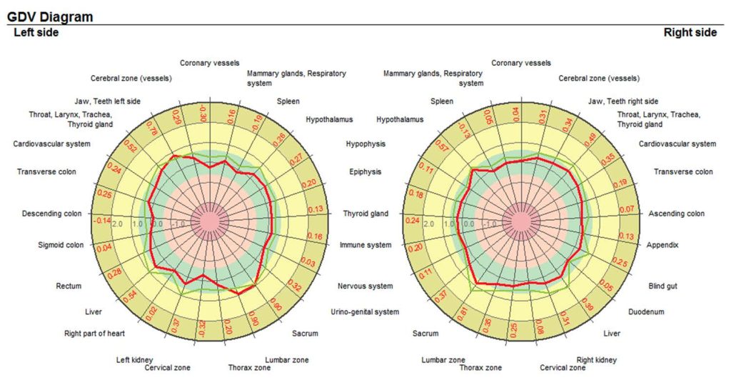 Il GDV permette di misurare il campo energetico nelle sue componenti fisica-psicologica-emotiva-spirituale, il livello di funzionamento di organi, i 7 centri energetici dell’uomo (detti anche chackra) e il livello dello stress.