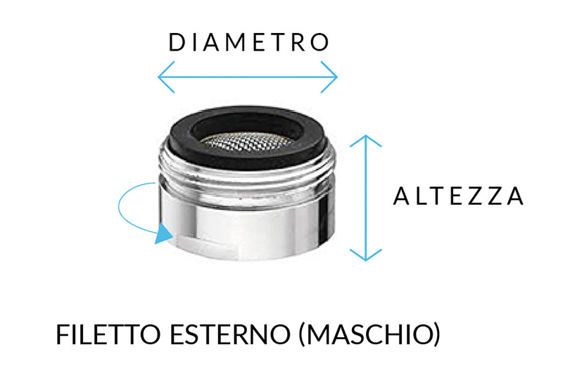 Per individuare il giusto adattatore per il tuo rubinetto è necessario misurare le dimensioni dell’areatore.